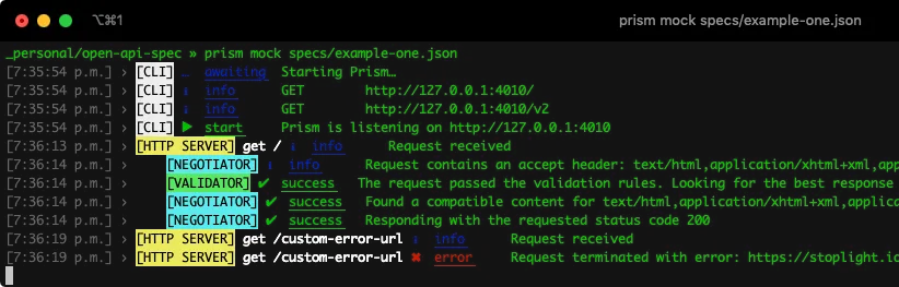 Another cool feature of these files is they can be used to spin up cheap and quick mock servers using the example data / responses included in them. Prism is a nifty little tool from the folks at Stoplight that does some cool things like mock servers. You can install the script on your machine via the global installation command: