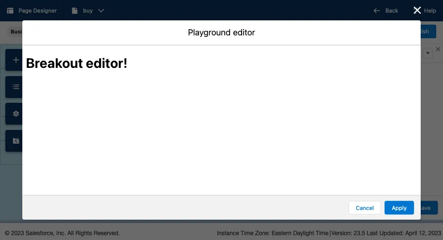 With our client updated we can make some minor adjustments to our React components to trigger a breakout editor. As this changes the viewport of an application from a narrow sidebar to a larger modal I would recommend taking care when designing your components to maximise this additional screen space.